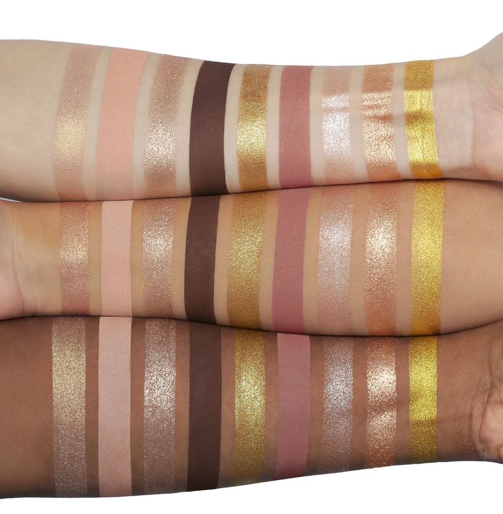 They blend really well specially the matte shades that create the base, I heard comments about the gold glittery ones to be complicated to apply or that most people wasn’t successful with the final results probably because the way Huda beauty glittery or shimmery shades work is to press with your finger over the shade for few seconds that the finger would warm up the shade and then press gentle and slowly over the eye and try to do it in small steps as the pigmentation is really high and is easy to end up doing a mess or having eye shadow falling off if we pick too much.