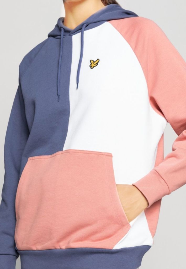 Lyly & Scott, Patchwork Hoodie – Warm Rose/Nightshade Blue, £65 at Lyle & Scott